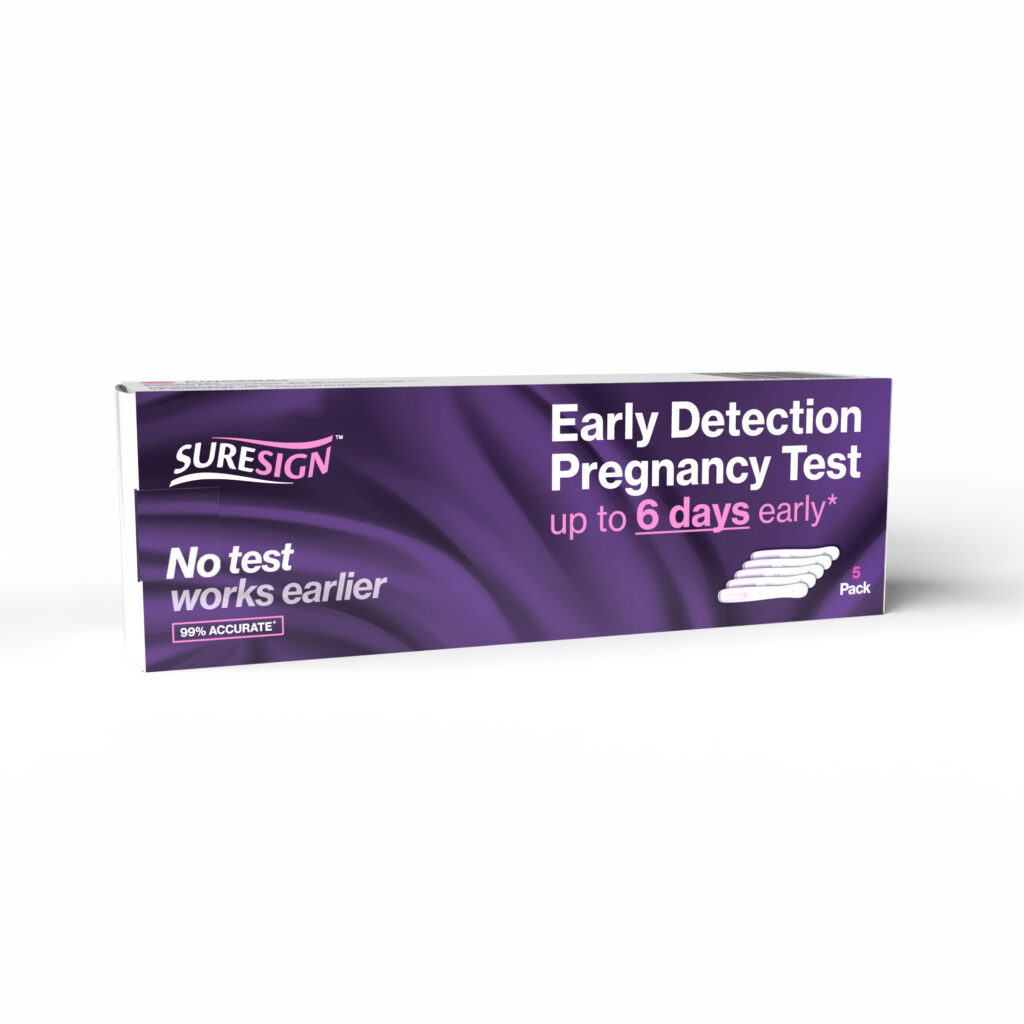 The SureSign 6 Day Early Pregnancy Test is designed to detect pregnancy hormones up to 6 days before your missed period*. It provides fast, dependable results so you can get answers sooner. With over 99 percent accuracy †, it offers reliable clarity when you need it most.